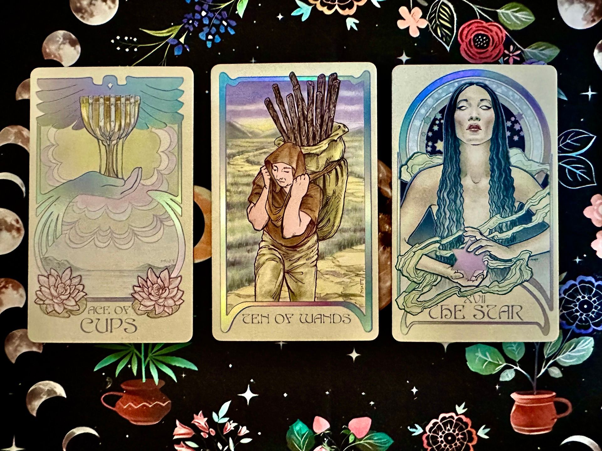 Career reading: Once again, like the last time, the Ten of Wands is asking you to put down weight that is not yours to carry. You are taking up extra work to get more credit or recognition, but you also need to see if there’s a pattern at your workplace/business that is not serving you right. If that is the case, no matter how much extra work you do, you will end up burnt out and not fulfilled. Make sure you don’t let that happen.